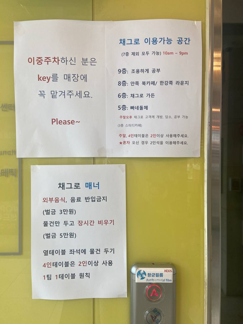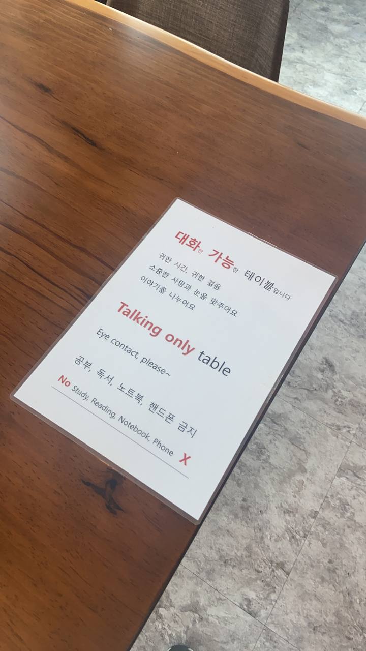 대화는 조용히 (공부,독서,노트북 사용O) 으로 나뉘어져있었다.