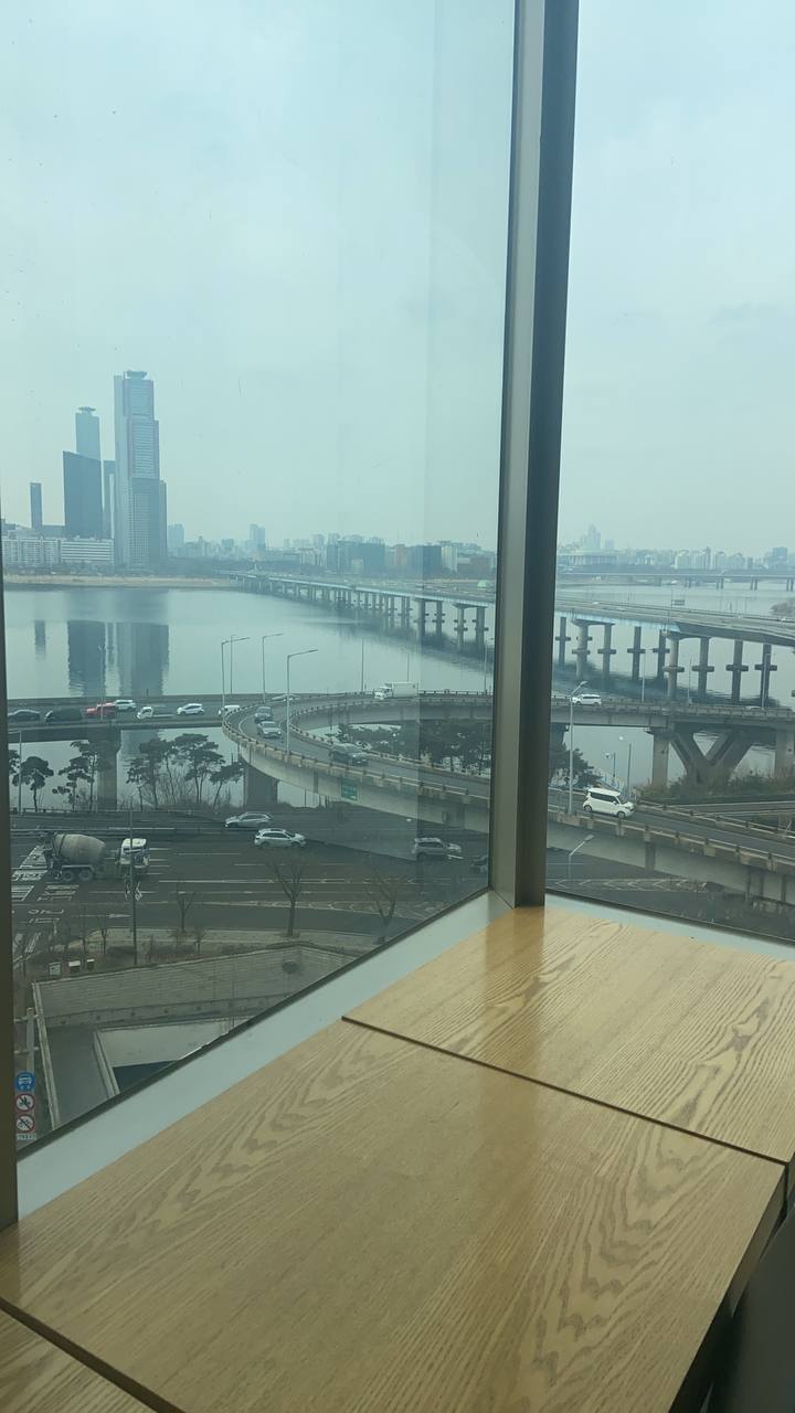 요 한강을 한 눈에 보며 마시는 커피 한 잔이 그렇게도 땡겼었더라는..